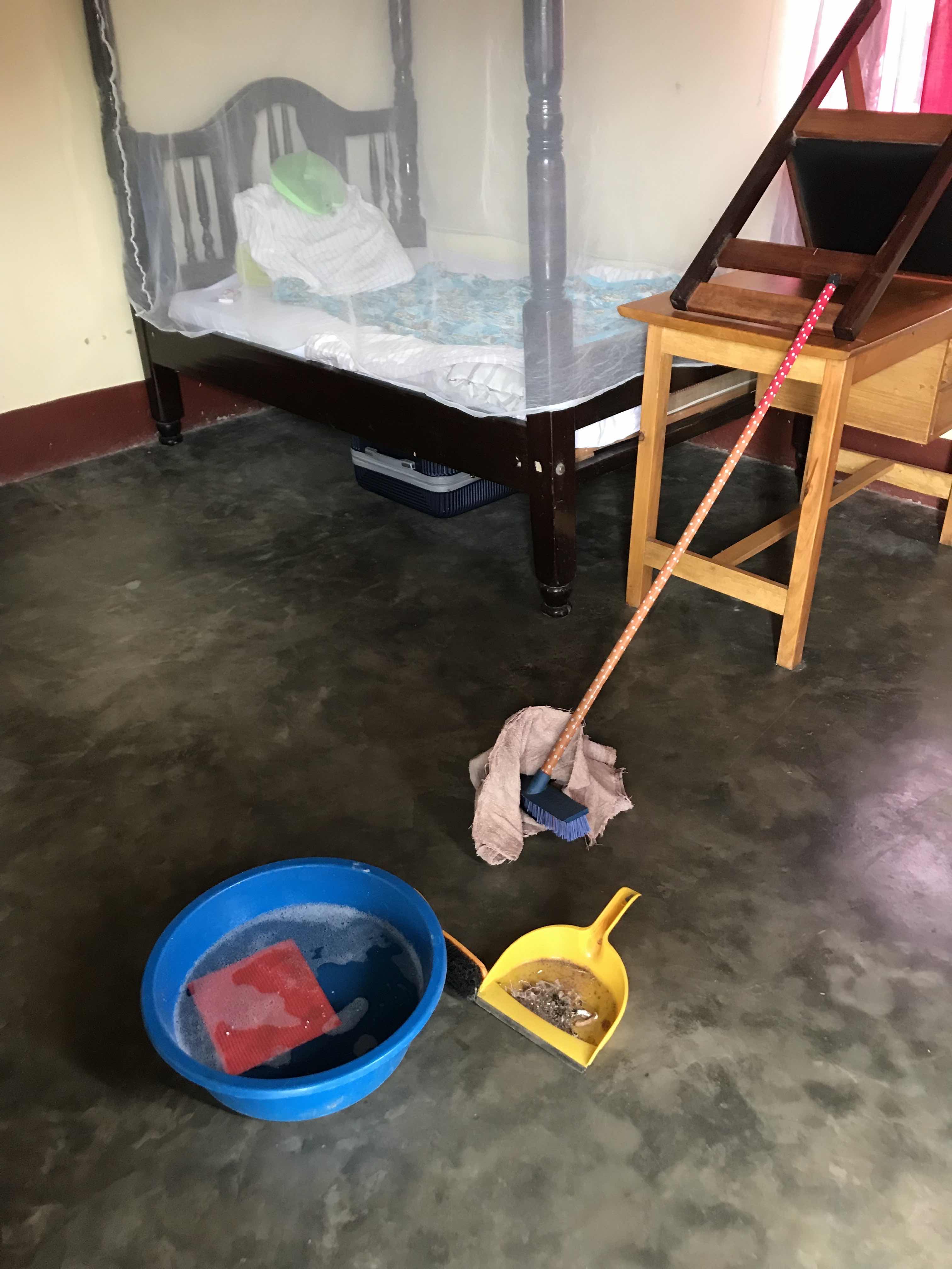 Und selbst wenn man nicht mit Straßenschuhen in’s Zimmer geht, wird es ziemlich schnell staubig – also erst kehren, dann wischen und das ein bis zwei Mal in der Woche.